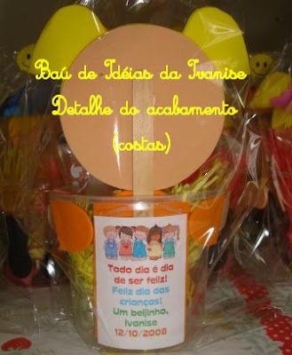 Ivanise gostei tanto da sua sugestão que usei como lancheirinha na festa as crianças da minha igreja.No imblema atrás coloquei blog baú de ideias.Muito obrigada.Beijos1