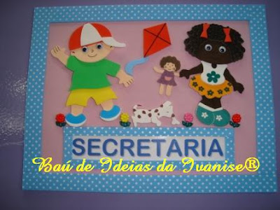 ♥ Materiais: EVA, bonecos em EVA, botões decorados, olhos móveis, cola quente, régua, tesoura e estilete. Palavras: cartolina, impressora e contact.